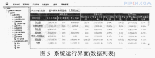 图5是预算及实际支出信息查询统计分析模块的运行界面。