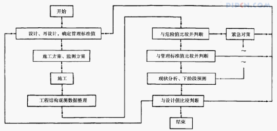 (1)利用计算机对观测值实施日常管理,并实时对工程结构的内力、变形等数据进行采集,比较每天的管理值和观测值,以明确监测工程安全性同管理制是否差距过大;