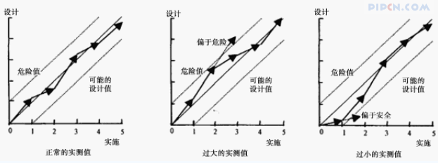 (2)利用观测结果,通过现状分析和下阶段预测来对设计参数进行推算,以新设计参数为依据进行分析,来对施工阶段的工程结构安全性加以判断,从而对施工阶段结构的内力和变形作出预测;
