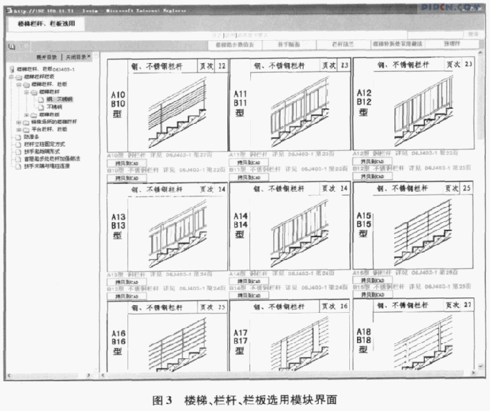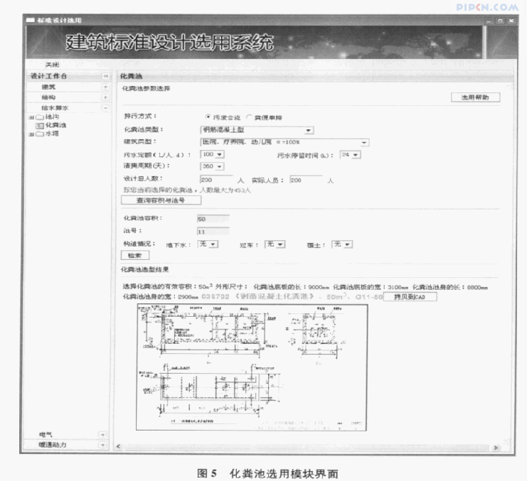 标准设计电子化研究取得了阶段性成果。初步确定了面向工程设计人员的标准设计应用模式,完成了标准设计平台整体技术架构的设计、数据库建立及程序编制工作,完成了《楼梯栏杆栏板( 一) 》、《钢雨蓬》和《钢筋混凝土化粪池》三本图集选用模块程序编制工作。课题成果经过专业人员试用获得了肯定。