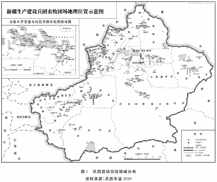 图1 兵团团场空间地域分布 资料来源: 兵团年鉴2010